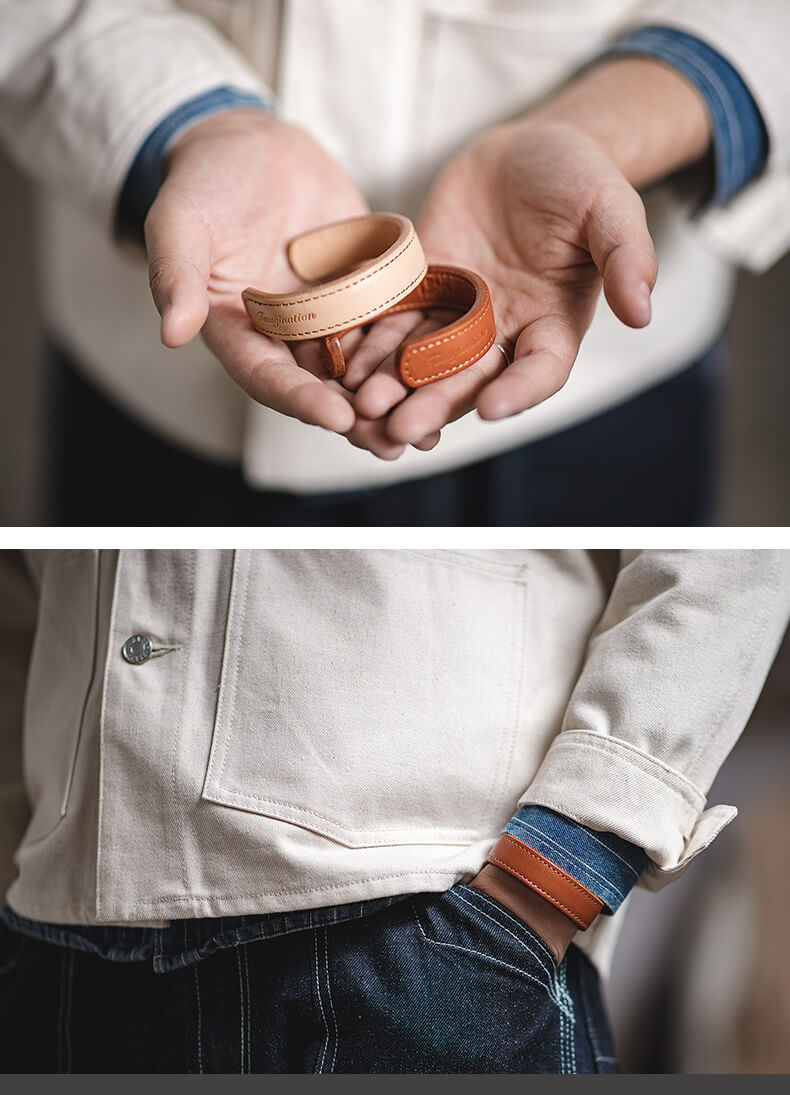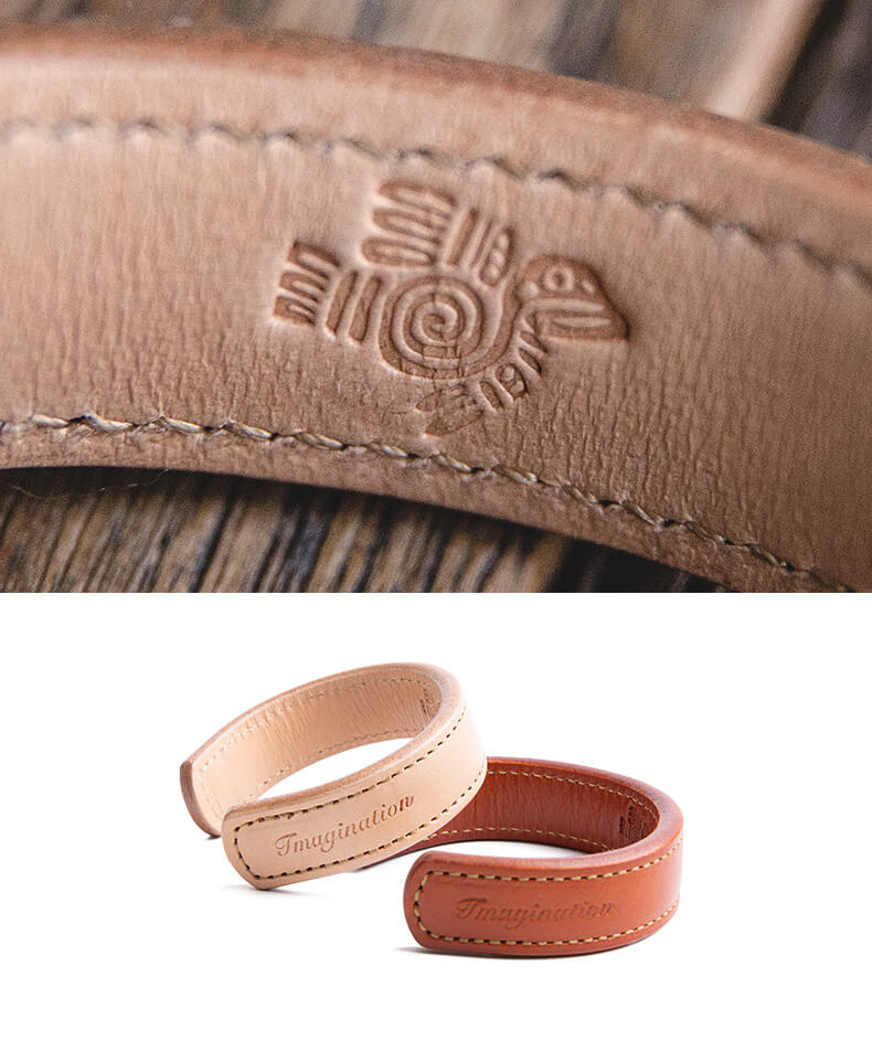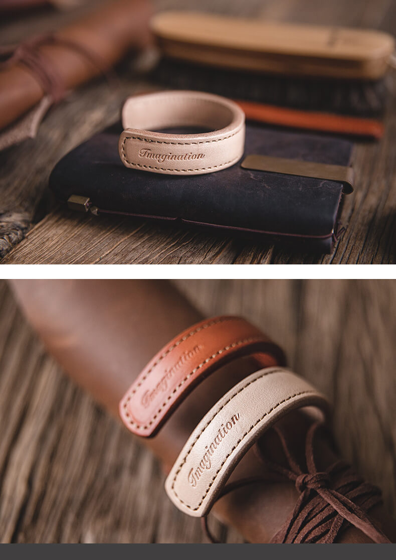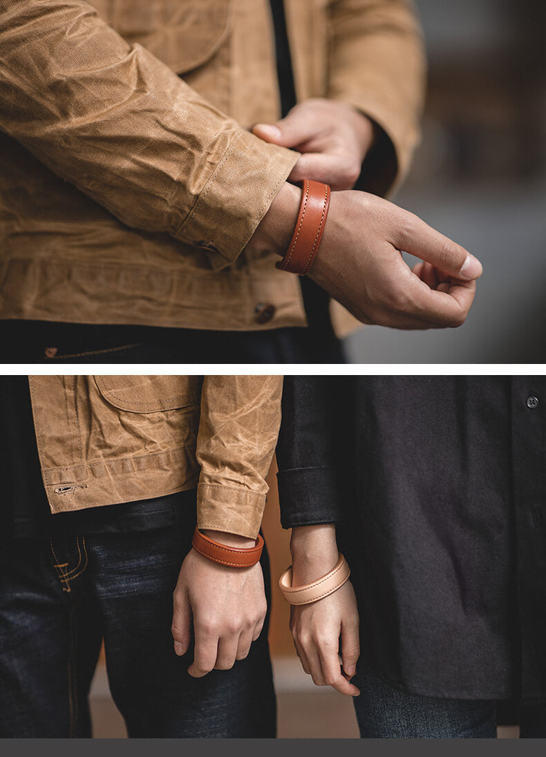 The imported top-layer vegetable tanned leather is warm, strong and comfortable to the touch. The rounded corners are hand-trimmed to fit the wrist. And it gets darker with time.
