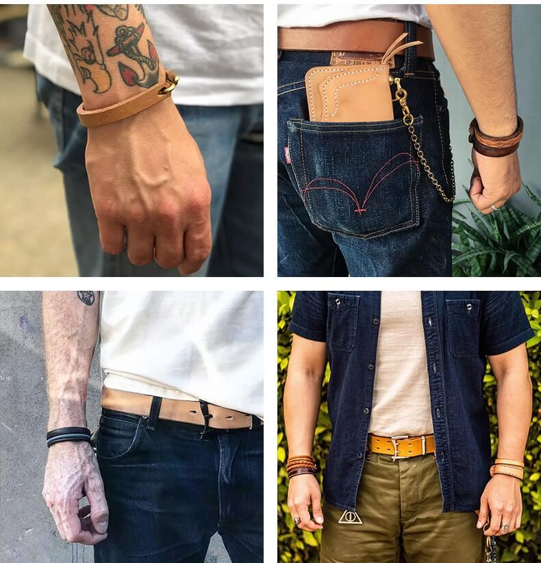 The thought of dressing is often reflected in the details. For example, add a vegetable-tanned leather bracelet to your empty wrist.